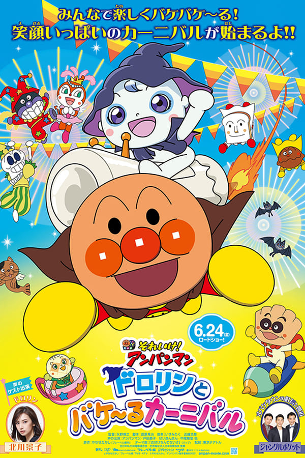 The stage this time is Baquel Carnival! It's a fun festival held in Obake Town, a cute and fun city of ghosts that can be transformed into anything! Children truly enjoy the amusement park-like glamorous and exciting Baker Carnival. However, only the ghost boy Dolorin, who is not good at transforming, can not enjoy it, so he is alone. Such Dolorin deepens the bond while encountering Creampanda. They head to Ozomashi no Mori in search of the cloak that has the most transformational power in the world, but Baikinman appears there and rampages to mess up the Baker Carnival with the power of the cloak! Can Anpanman and others protect the fun Baker Carnival from Baikinman?