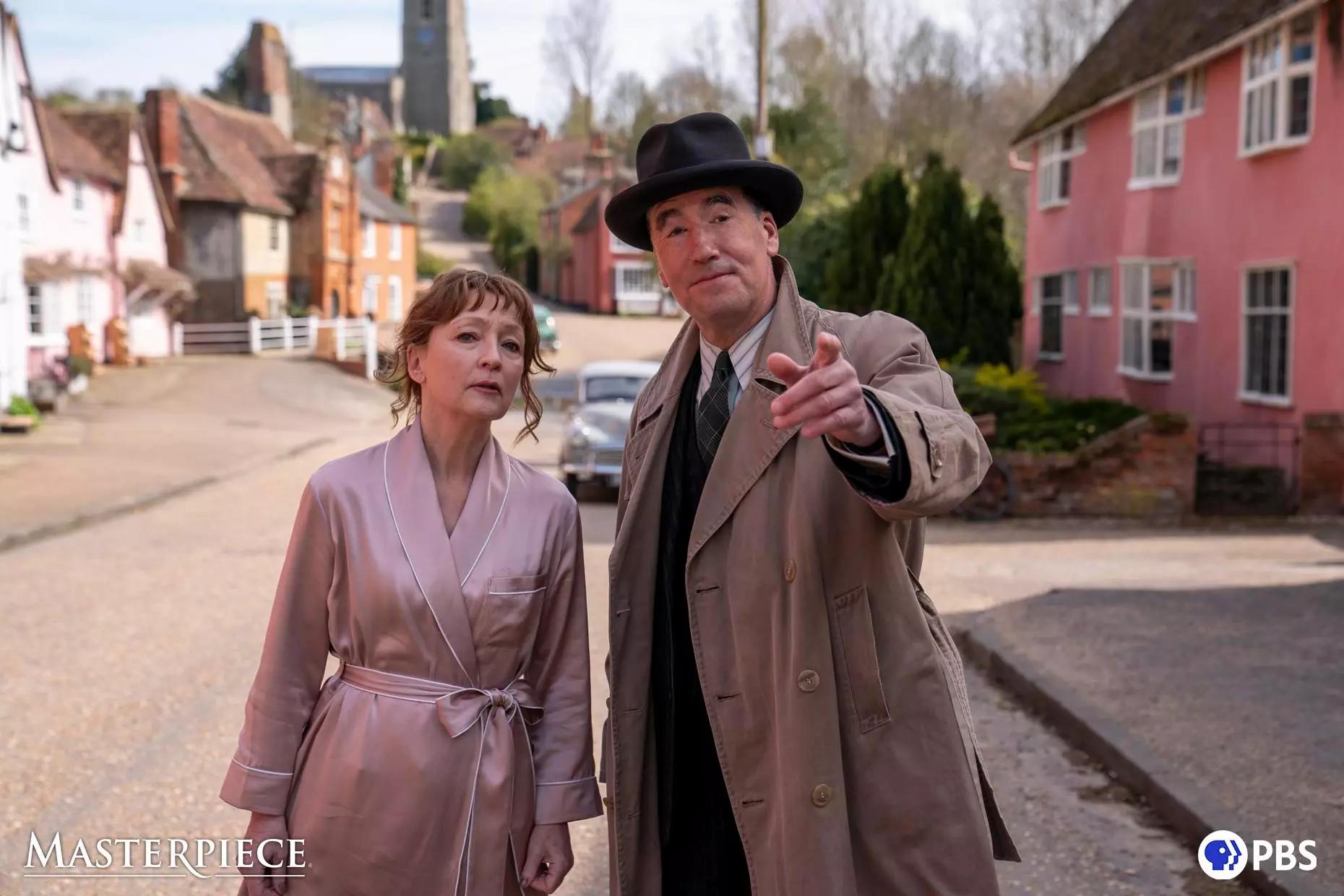 Кадры из телеэкранизации детектива Энтони Горовица «Сороки-убийцы» с Лесли Мэнвилл в главной роли