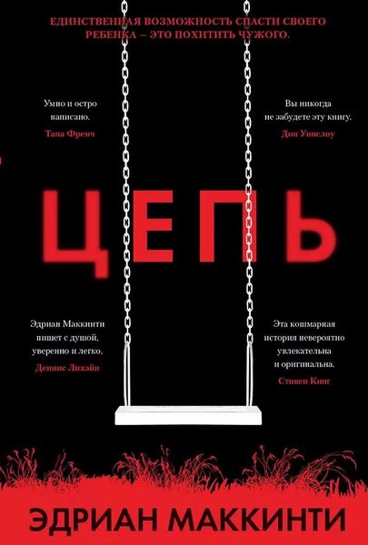 Наши требования могут показаться невыполнимыми, а на самом деле вполне вам по силам», — говорит незнакомый голос в мобильном телефоне. Нет, вам звонят не по ошибке. «Молитесь, чтобы никогда не узнать, ни кто мы, ни на что мы способны». Это значит, что вы попали в Цепь. Все происходит как в кошмарном сне, но это реальность. Схема, по сути, очень проста. У вас похищают ребенка. Вы платите выкуп. Дополнительное условие: вы похищаете чужого ребенка. Из этой западни не вырваться… Но обычная женщина по имени Рейчел бросает вызов Цепи, и между ними начинается смертельное противостояние.